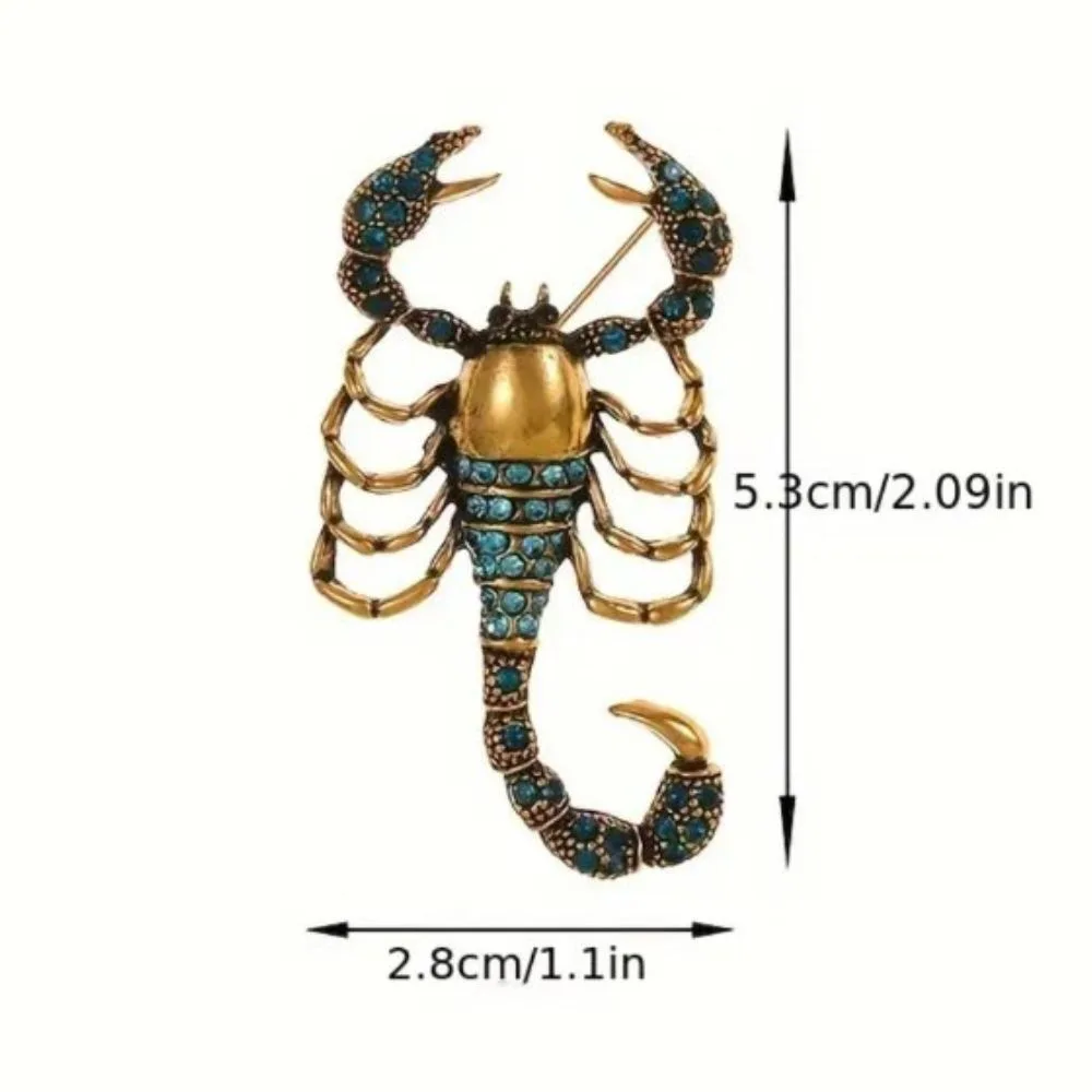 Винтиџ брош во форма на шкорпија, украсен со ситни сини кристали. Елегантен и редок детал од 1980-тите години – совршен избор за љубителите на уникатен и ретро стил. Одлично се вклопува со палто, шал или чанта, додавајќи допир на префинетост и карактер. Димензии: 5,2 см должина